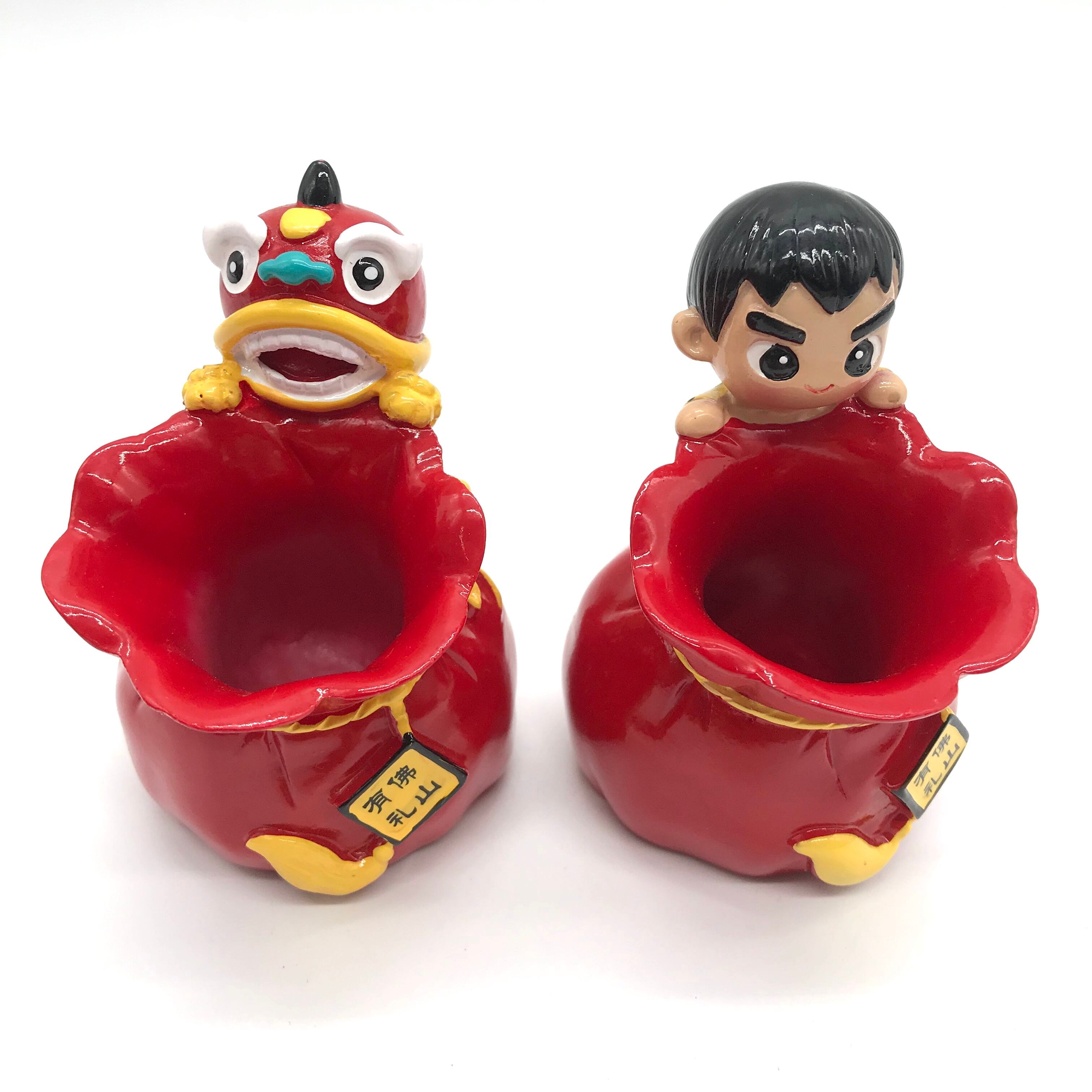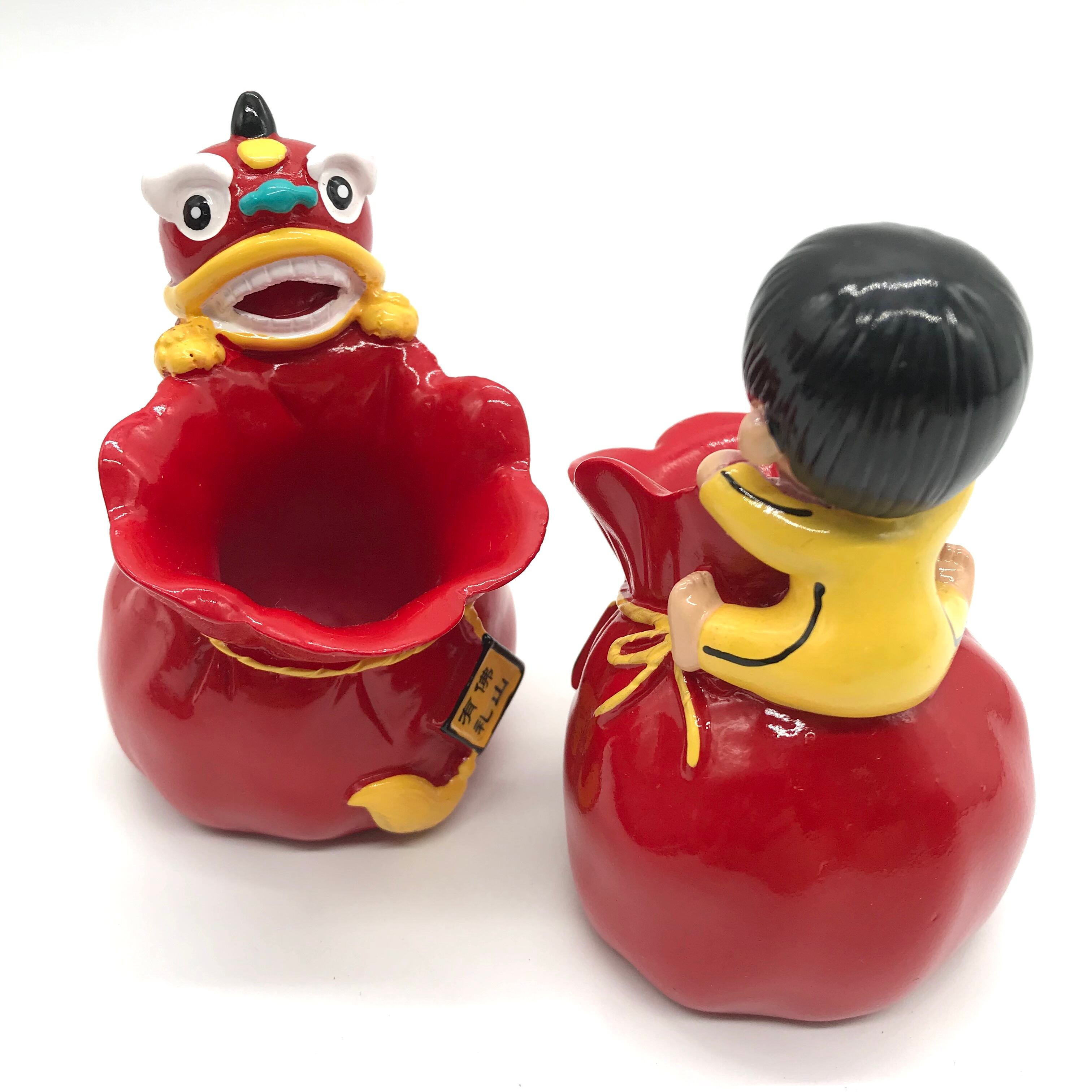 ブルースリー(李小龍)と獅子のペン立て 樹脂製置物セット